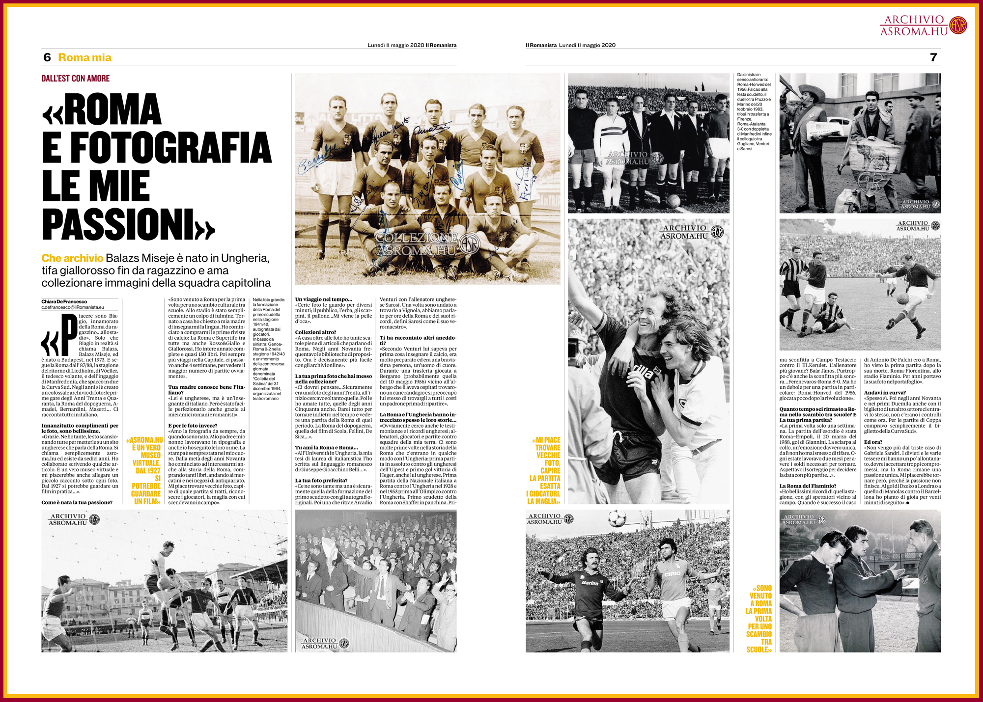 Az ’90-es évek közepétől, amikor Rómában voltam, gyakran elmentem a Porta Portesere, a híres római használt piacra, itt mindig lehetett találni valamilyen régi, AS Romával kapcsolatos kincset. A ’90-es évek legvégén pedig az internet megjelenésével, az ebay, és a különféle aukciós áruházak licitálós oldalak jóvoltából újabb kincsekre lelhettem. Könyvtárakat bújtam, kerestem a régi Roma mérkőzésekről cikkeket, olyan barátságos mérkőzéseket, amiknek máshol nagyon nyoma sem volt. Otthon több hatalmas dobozban vannak régi újságok lapjai 1927-től a 2000-es évek elejéig. Felkerestem több régi Roma játékost, fotósokat, akik korabeli lapoknak fényképeztek Roma mérkőzéseken vagy sok esetben már csak leszármazottaikat.