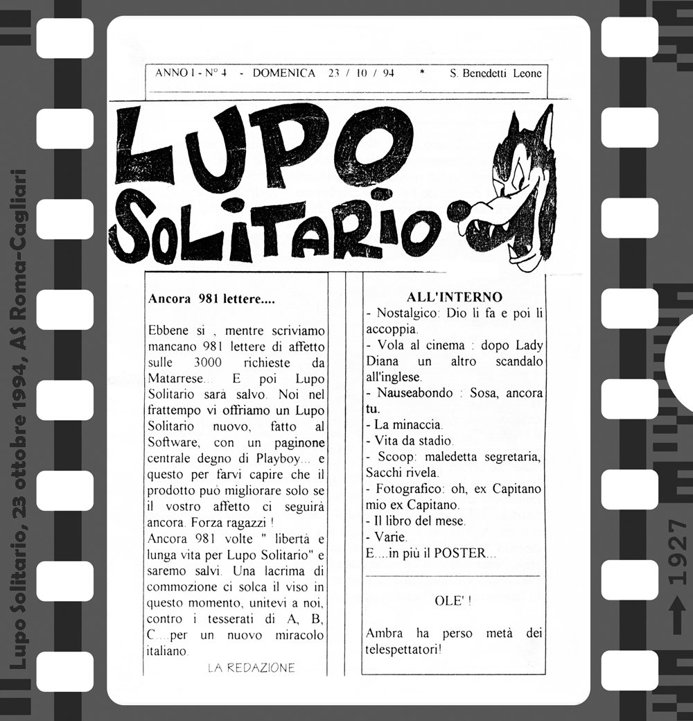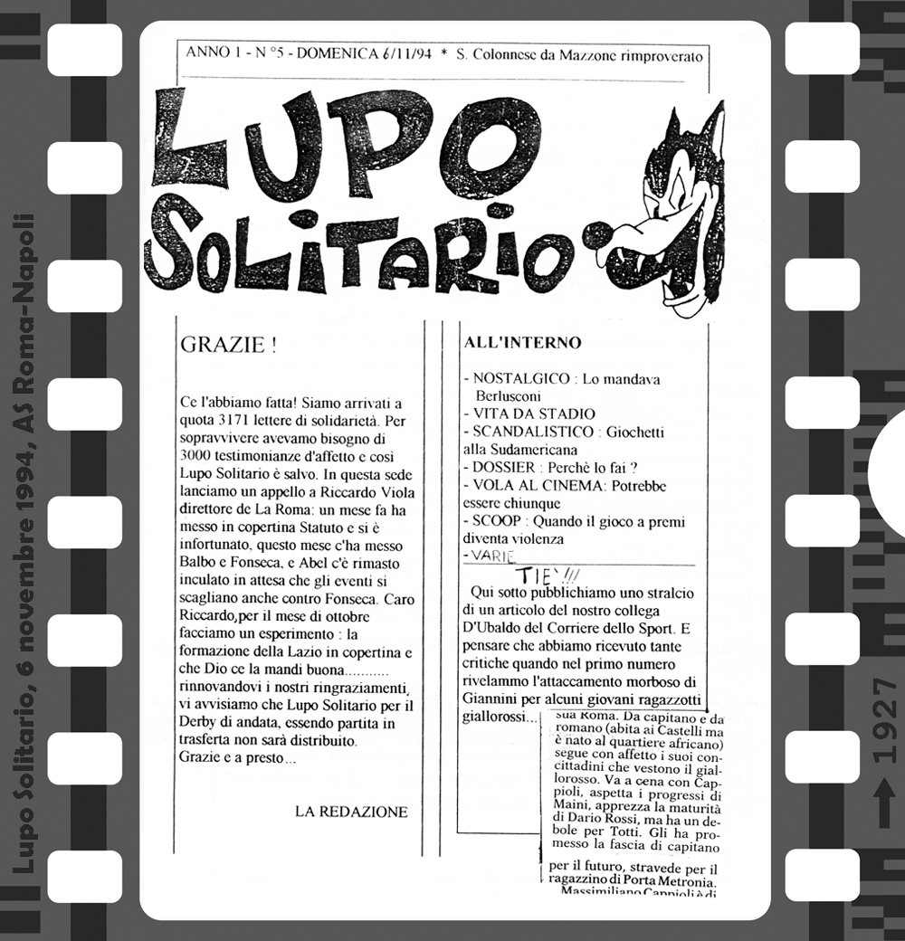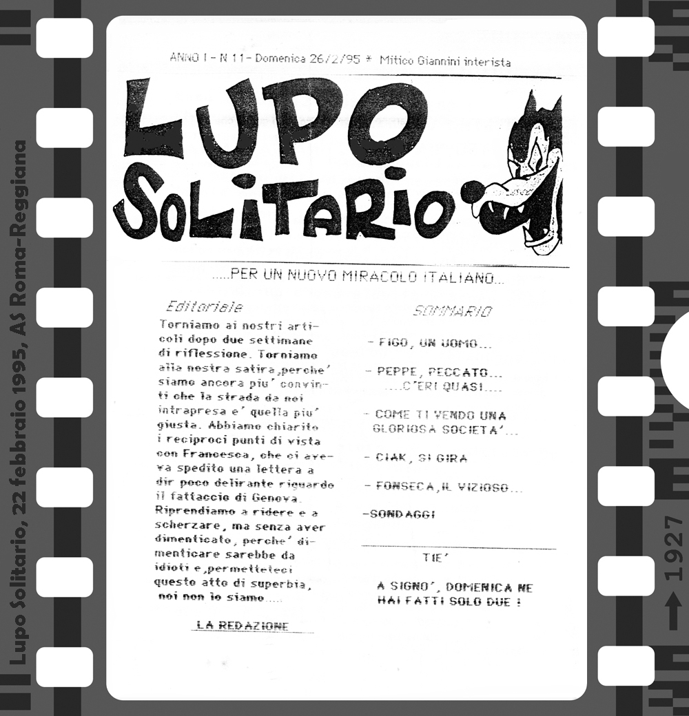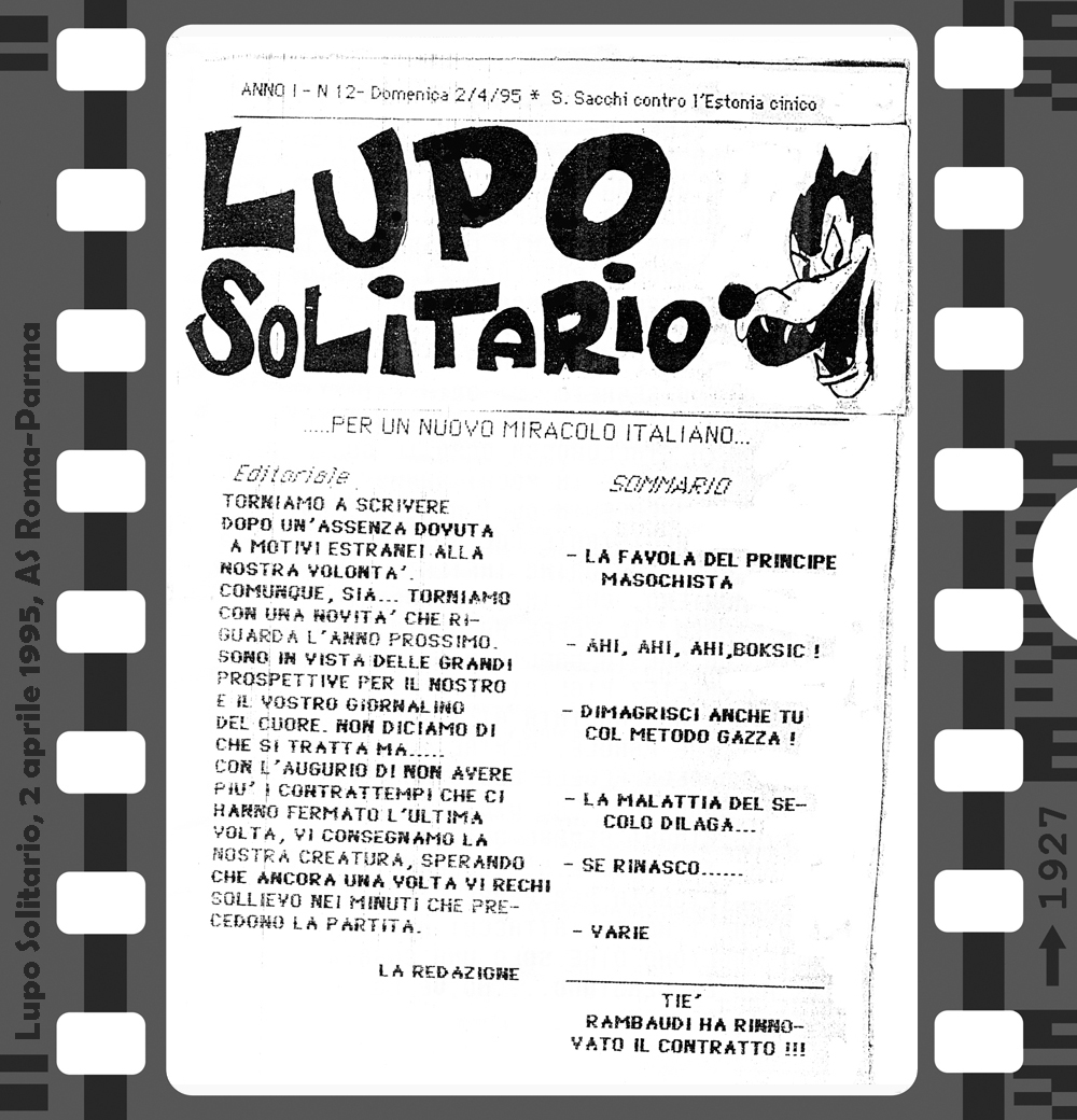 Az 1994/95-ös bajnokság első hazai mérkőzésén, a Foggia elleni találkozón lehetett először találkozni a Curva Sud-ban a Lupo Solitario (magányos farkas) című fanzin első példányaival. Innentől az idény minden hazai bajnokiján újabb lapszámot forgathattak a szurkolók. Az első három még kézzel íródott, a negyedik és innentől a többi szám már gépírással. 8, 12 vagy 16 oldal terjedelemben jelent meg ez az igazi kuriózumnak számító kiadvány. A többi fanzintól eltérően itt nem olvashatunk a csapatról, idegenbeli mérkőzésekről, utazásokról, a szurkolótábort érintő problémákról. Sok komolyságra ne számítsunk, egy humoros, sokszor szatirikus kiadványról van szó, amiben a témák persze valamilyen szinten kapcsolódnak a Romához és a labdarúgáshoz, de azért nem túl szorosan…
