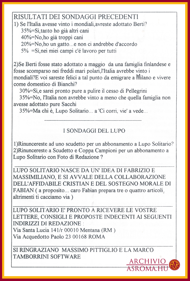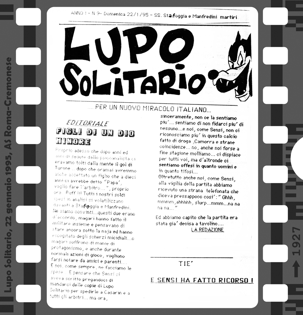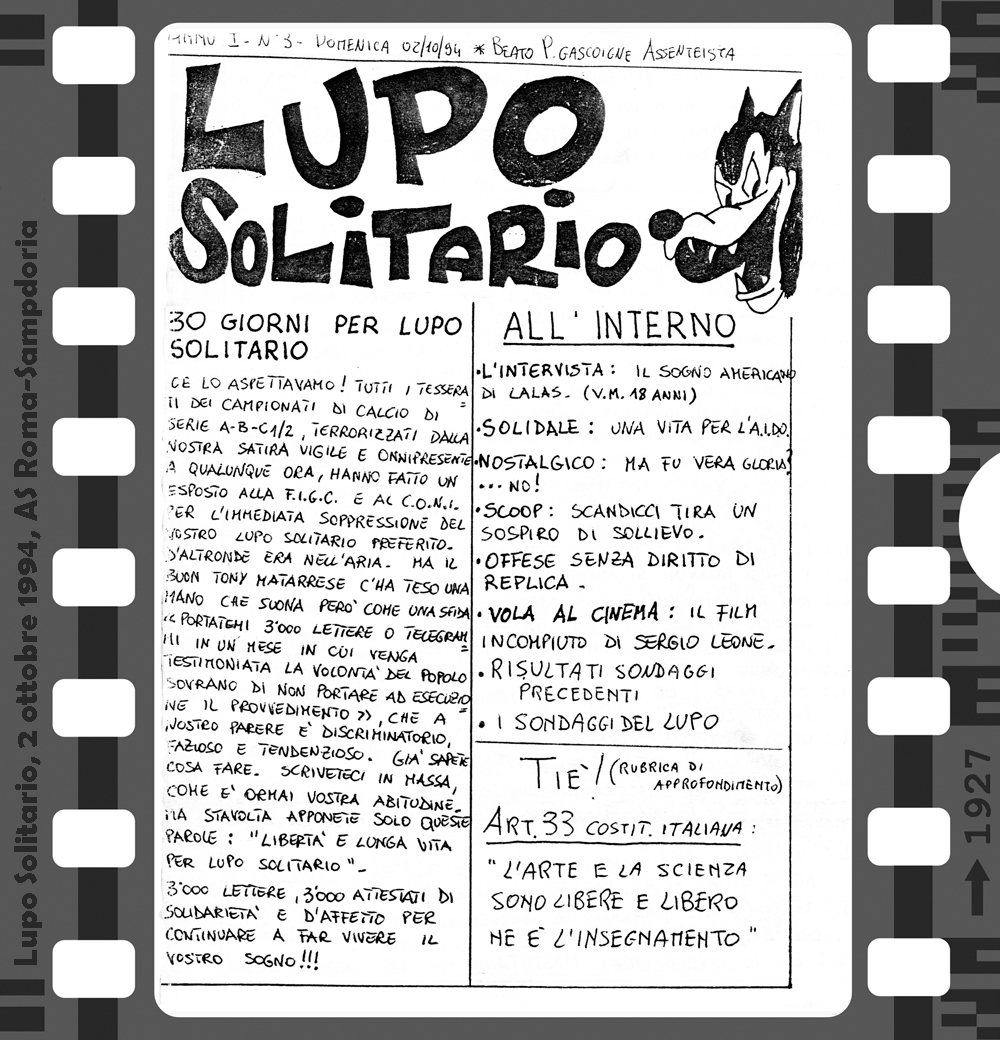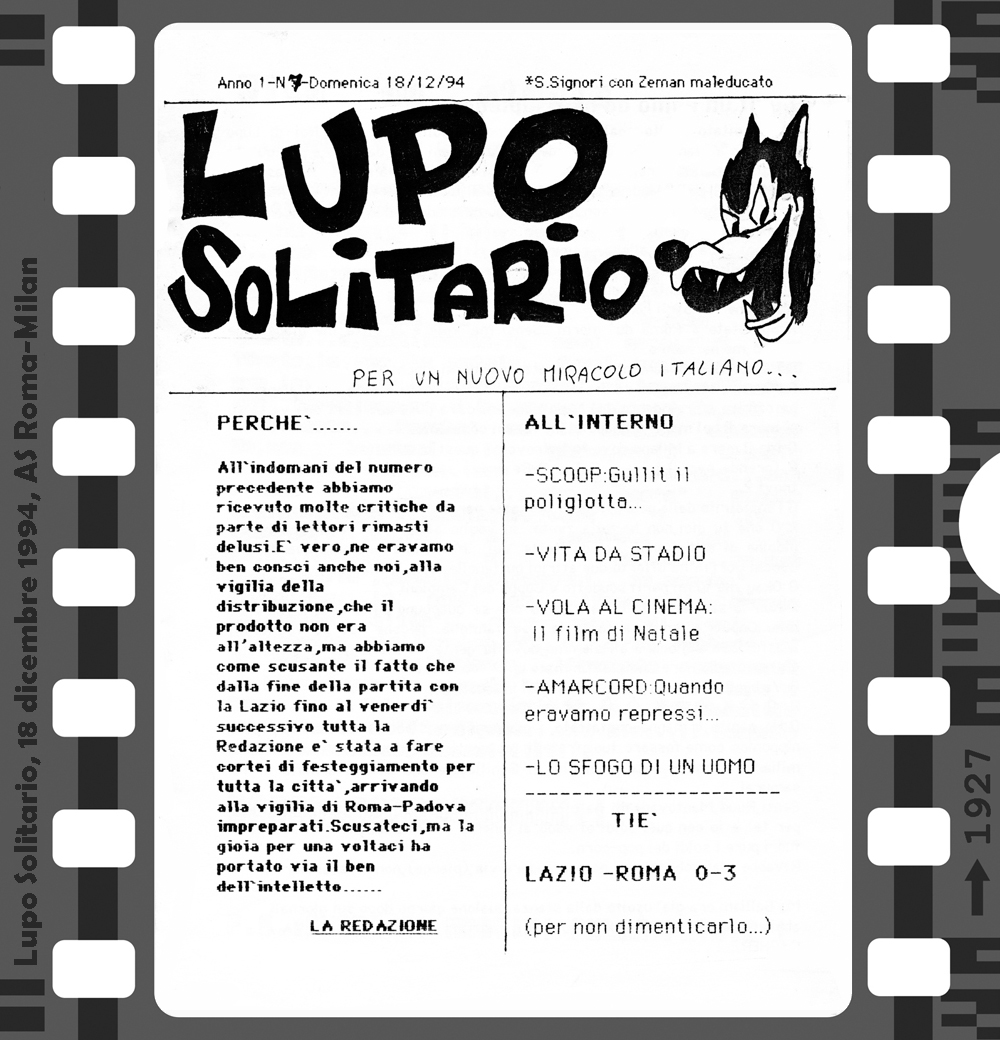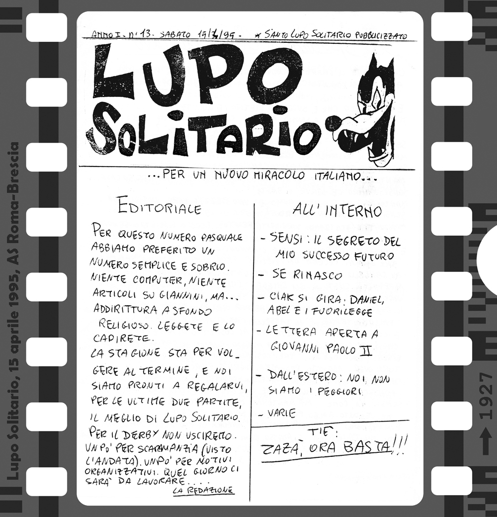 Az 1994/95-ös bajnokság első hazai mérkőzésén, a Foggia elleni találkozón lehetett először találkozni a Curva Sud-ban a Lupo Solitario (magányos farkas) című fanzin első példányaival. Innentől az idény minden hazai bajnokiján újabb lapszámot forgathattak a szurkolók. Az első három még kézzel íródott, a negyedik és innentől a többi szám már gépírással. 8, 12 vagy 16 oldal terjedelemben jelent meg ez az igazi kuriózumnak számító kiadvány. A többi fanzintól eltérően itt nem olvashatunk a csapatról, idegenbeli mérkőzésekről, utazásokról, a szurkolótábort érintő problémákról. Sok komolyságra ne számítsunk, egy humoros, sokszor szatirikus kiadványról van szó, amiben a témák persze valamilyen szinten kapcsolódnak a Romához és a labdarúgáshoz, de azért nem túl szorosan…